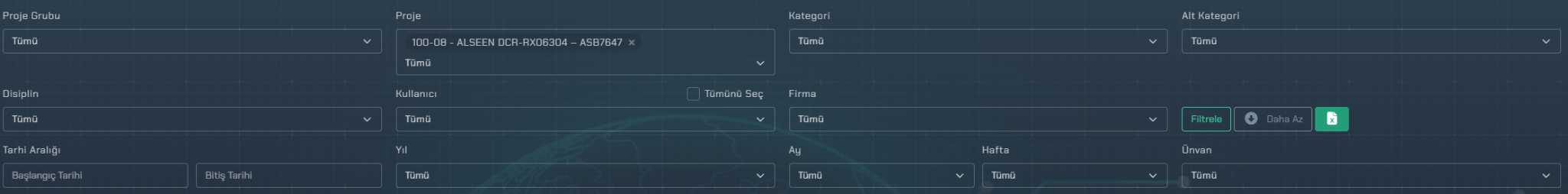 Kullanıcılar aşağıdaki filtrelerle özel raporlar oluşturabilir: