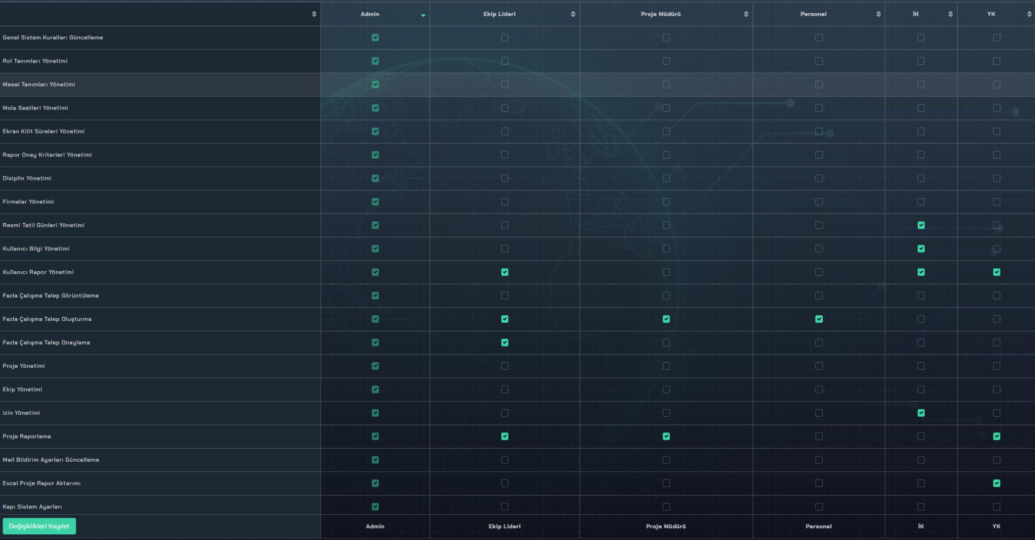 Sistemde sınırsız sayıda rol oluşturabilir, her role özel yetkiler atayabilirsiniz. Böylece sadece yetkilendirilmiş kullanıcılar belirli verilere veya sayfalara erişebilir.