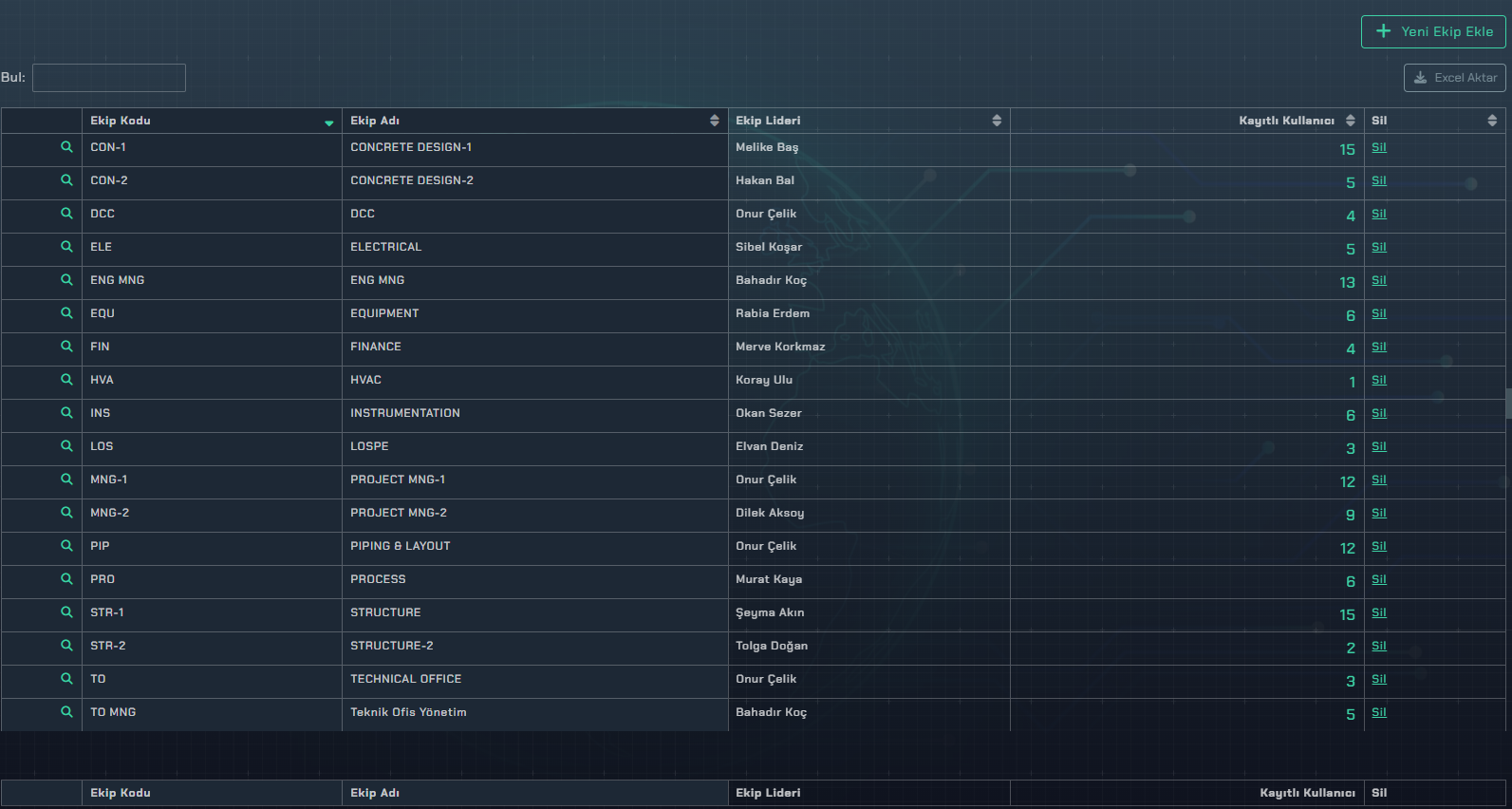 Karma, büyük ve çok disiplinli organizasyonlar için ekip bazlı yönetimi destekleyen gelişmiş bir yapı sunar. Sistem içerisinde dilediğiniz sayıda ekip oluşturabilir, bu ekiplere ekip liderleri atayabilir ve liderlere kontrol ve onay yetkileri verebilirsiniz.